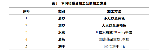 哈蟆油( Oviductus Ranae) 系蛙科動物中國林蛙( Rana temporaria chensinensis David. ) 雌蛙的輸卵管干制 品,純天然、無污染、全營養,已然成為中國東北的珍貴滋補品。哈蟆油的食用歷史可追溯到滿族入關 之前,只有在滿族大祀或大宴等重要活動時,哈蟆油才會作為最圣潔的食品出庖供盤。而在民間,哈蟆油有多 種加工方法,比如蒸、燉、烘干等,這些加工方法對哈蟆油中主要活性成分的影響尚不明確。因此,本文以 2015 版《中華人民共和國藥典》一部中哈蟆油的鑒別指標———1 - 甲基海因為研究對象,通過 HPLC 法建 立含量測定方法,并對不同哈蟆油加工品中 1 - 甲基海因的含量進行比較,為哈蟆油加工方法的深入研究奠 定基礎。