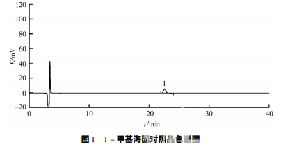 取 1 - 甲基海因對照品適量,精密稱定,加甲醇制成 1 mL 含 0. 102 mg 的溶液,作為 1 - 甲基海因對照品 母液; 精密吸取 1 - 甲基海因對照品母液 1 mL,置 10 mL 量瓶中,制成 1mL 含 10. 2 μg 的溶液,即得。