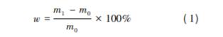 參照 GB /T 15780—1995《竹材物理力學性質(zhì) 試驗方法》測定竹材含水率。對截取的新鮮竹筒 上方 2 cm 處尺寸為 10 mm×10 mm×t 的小竹塊進 行含水率測試。取 10 個小竹塊稱質(zhì)量后放入 80 ℃烘箱中恒溫干燥至絕干,并記錄絕干竹塊的質(zhì) 量。竹材含水率( w) 計算公式為: